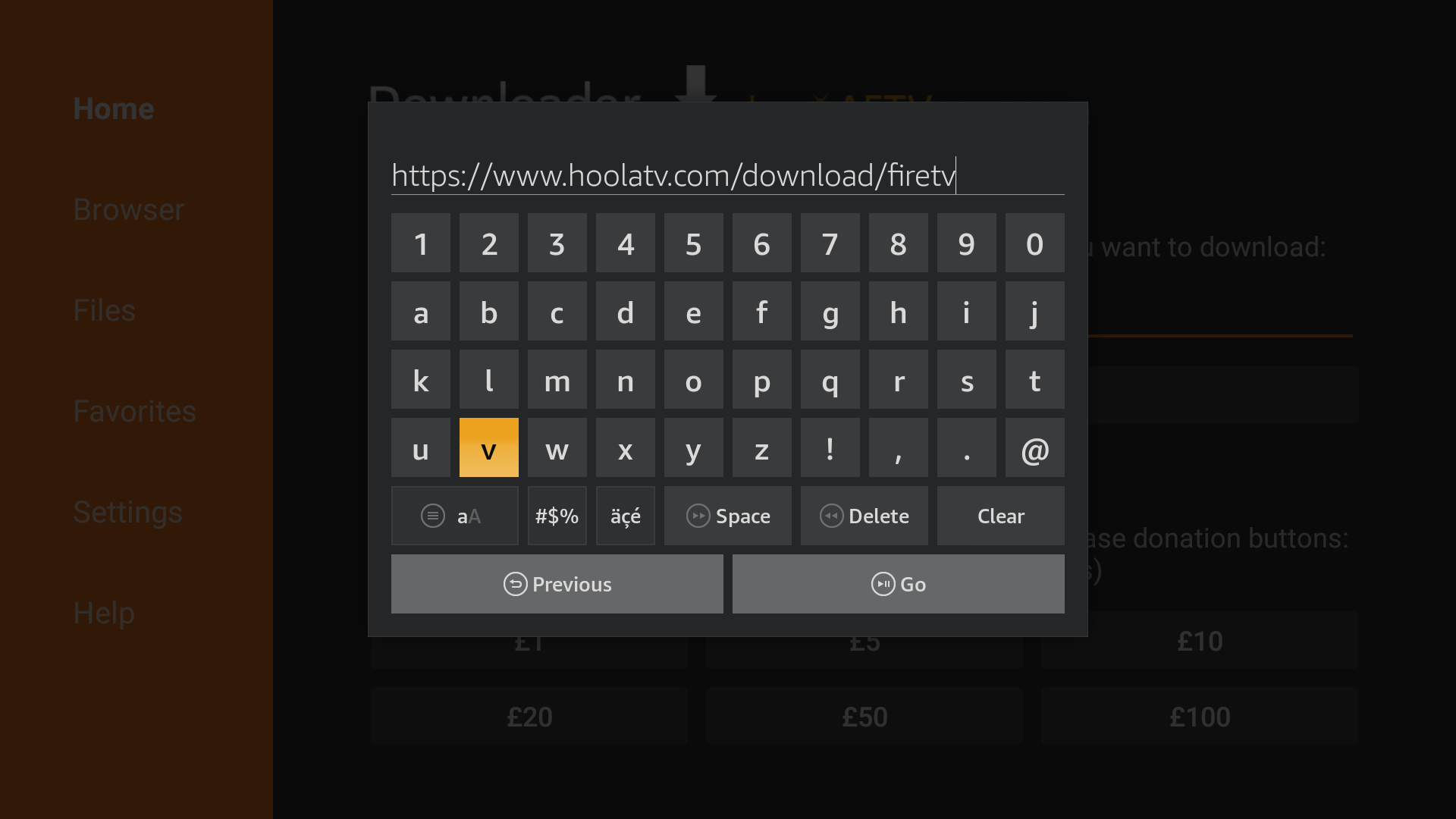 13. In the text field for URL type https://www.hoolatv.com/download/firetv